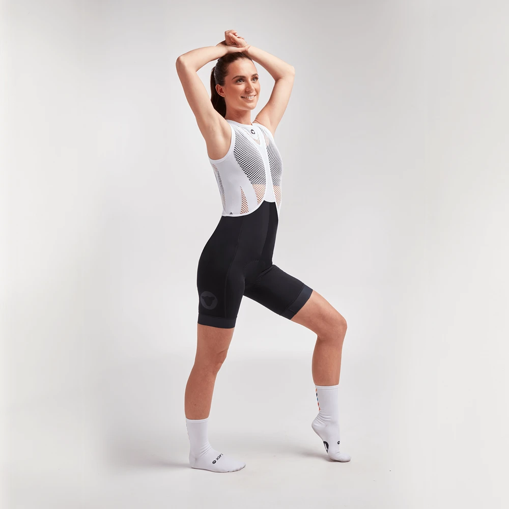 A shorter bib short for those that want it. Mid-thigh to be exact. A soft silicone underside cuff ensures that the short will never move position, no matter how much you test it.